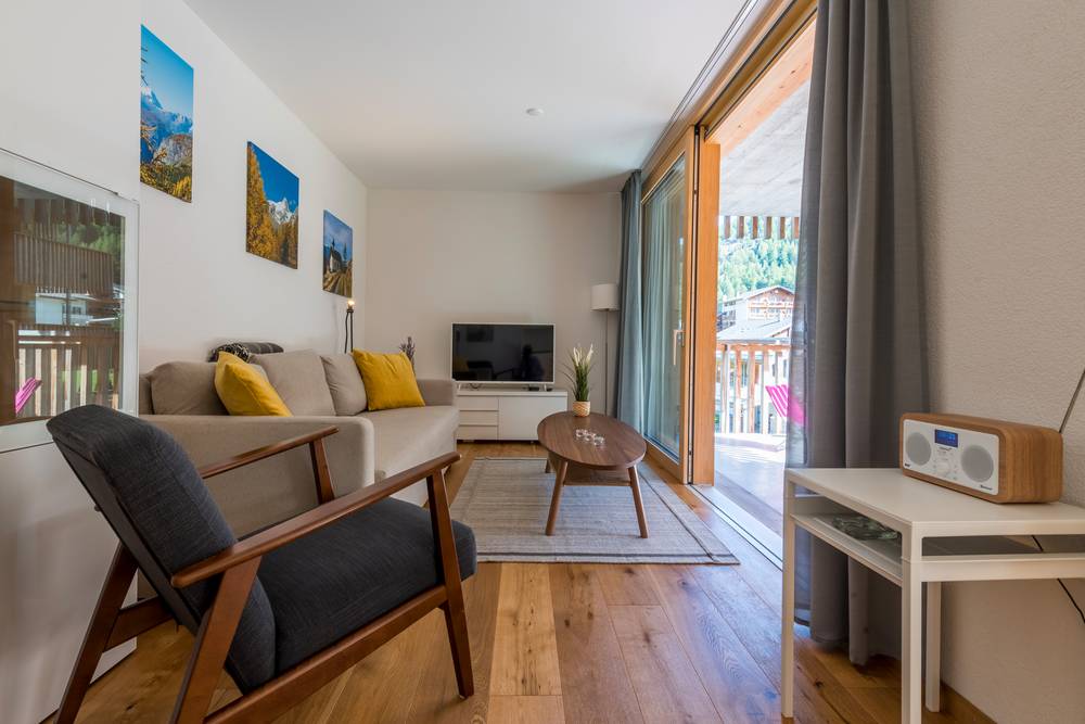 Die Lage ist perfekt: Direkt neben der Bushaltestelle «Saas-Grund, Unter dem Berg» mit Verbindung nach Saas-Fee und nur wenige Gehminuten von der Talstation Hohsaas entfernt. So erreichen Sie Pisten, Winterwanderwege und Loipen schnell und bequem.