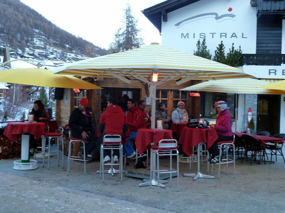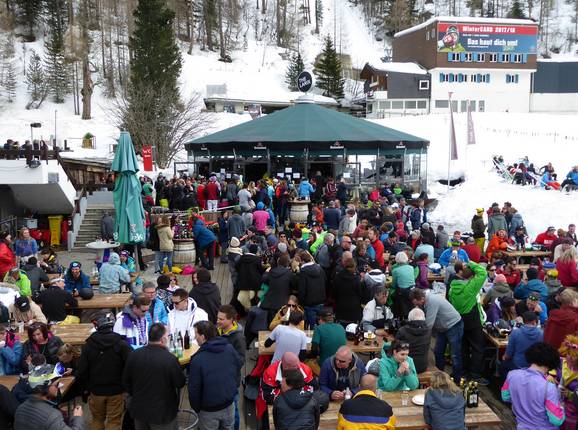 Ideal zum Après-Ski unter freiem Himmel. Die Heizstrahler und Drinks wärmen an kalten Tagen.