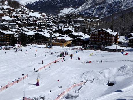 Das Swiss Snow Kids Village am Skischulsammelplatz ist ideal für die Kleinen. Es gibt Übungslifte und leichte Pisten im Tal. Der Adrenalin Cup Slalom Stafelwald macht auch den Kindern einen großen Spaß. Die Pisten rund um Morenia und Längfluh sind nicht zu steil und somit ideal für die ganze Familie. Neben der größten Eisgrotte der Welt am Allalin gibt es den Alpine Coaster Feeblitz und eine 6 km lange Rodelbahn am Hannig.