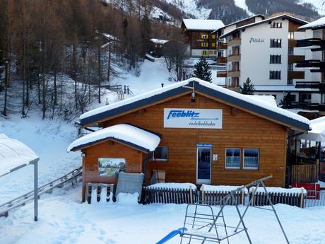 Der Feeblitz ist einer der steilsten Alpine Coaster der Alpen. In einer atemberaubenden Fahrt saust man mit bis zu 40 km/h zurück ins Tal. Ein Spaß für Groß und Klein. Der Feeblitz startet etwas oberhalb der Talstation des Alpin Expresses.
