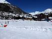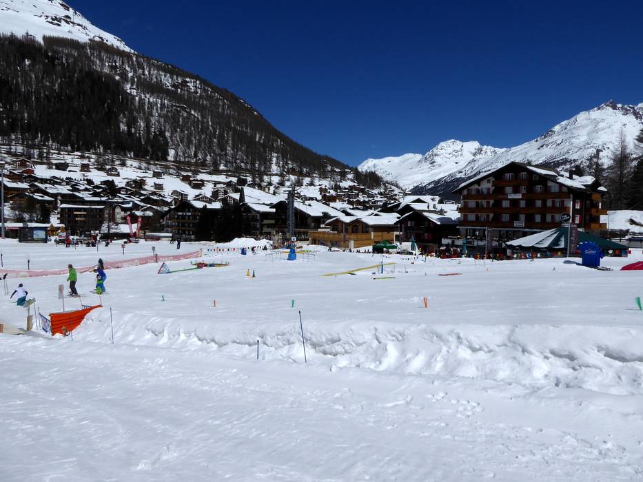 Im Kinderpark der Skischule Saas-Fee gibt es zwei Zauberteppiche, Slalomparcours, lustige Figuren und ein Kinderkarussell. Am Ortsrand von Saas-Fee ist das Snow Kids Village die richtige Anlaufstation für Kinder.