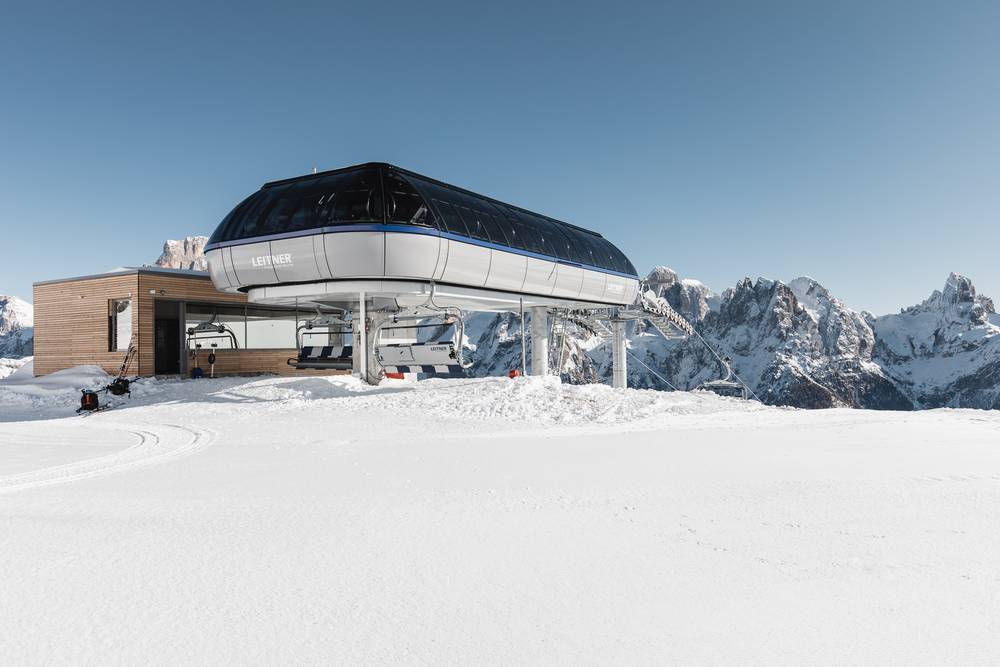 Der neue Cigolera 6er-Sessellift by Leitner gilt als erster Schritt zur Modernisierung der Verbindung zwischen Ces und Tognola, ein wichtiger Schnittpunkt der Carosello delle Malghe (Hüttentour) im Skigebiet San Martino di Castrozza – Passo Rolle.