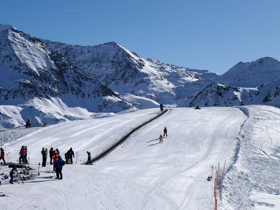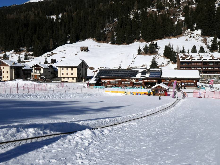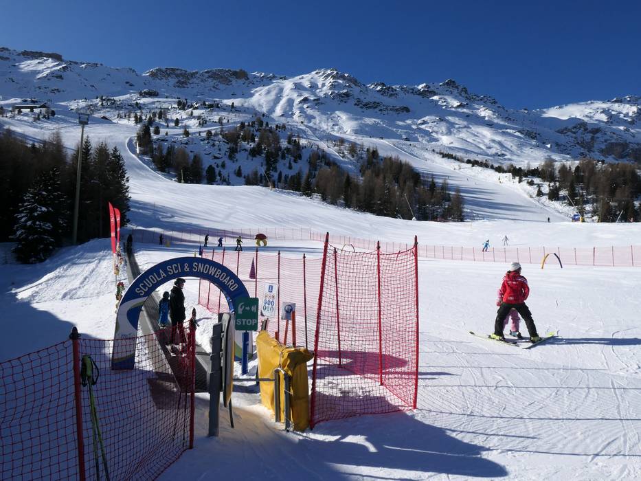 Direkt an der Mittelstation Plaghera der Gondelbahnen befindet sich ein Übungsgelände mit Förderband. Die Skischule unterrichtet hier auch.