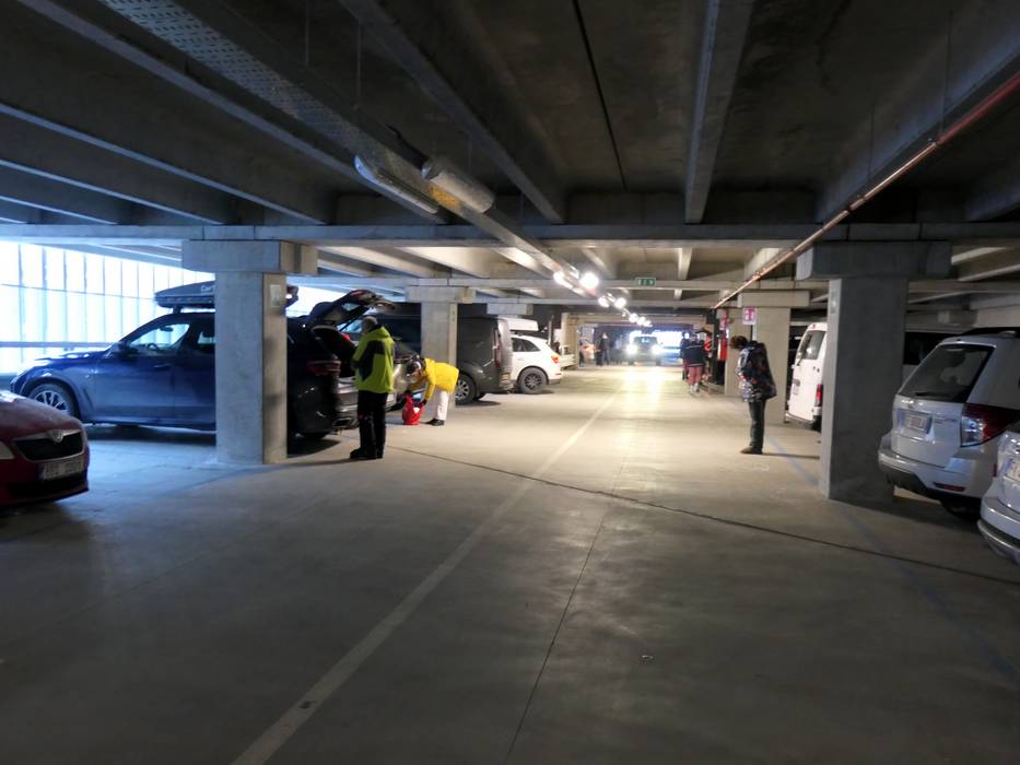 • meist ausreichend vorhanden, Parkhaus, asphaltierter Platz