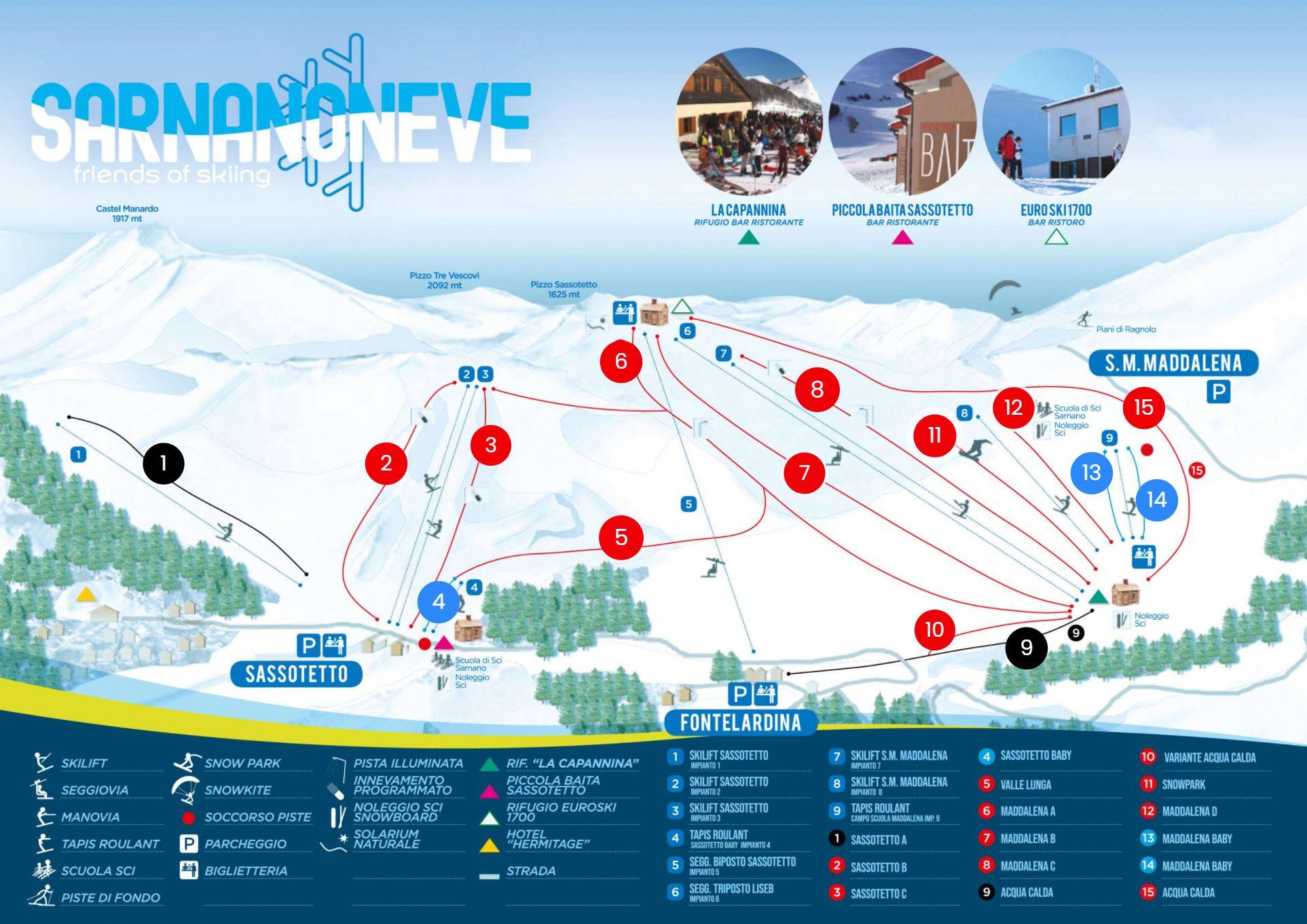 Pistenplan Sassotetto – Santa Maria Maddalena Saison 2024/2025