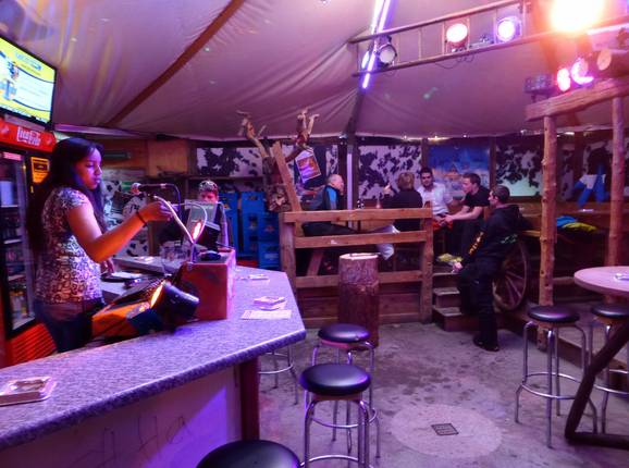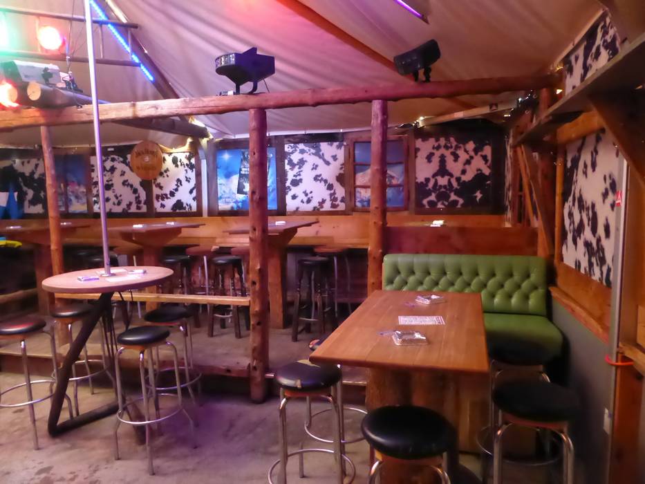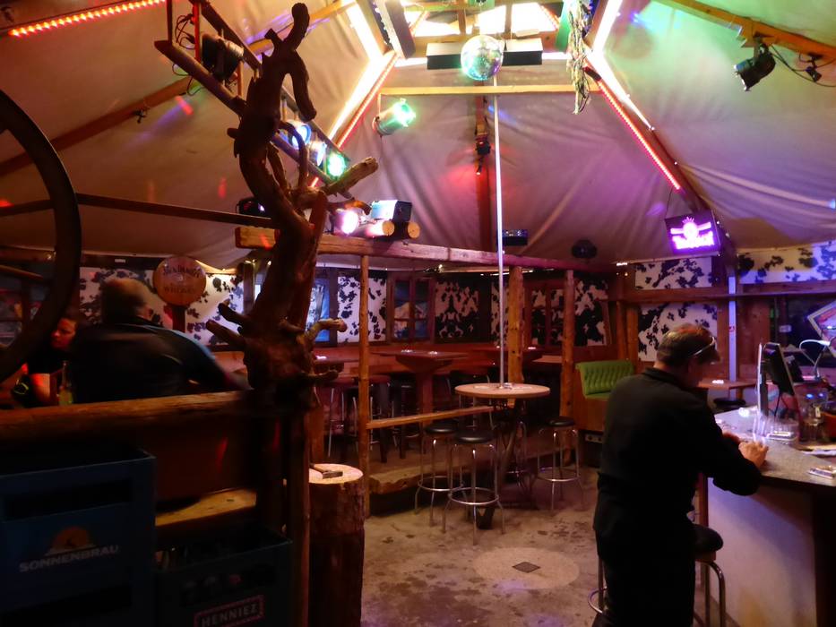 Etwas versteckt in einem Partyzelt hinter der Hütte wird hier täglich ab 14 Uhr Après-Ski angeboten.