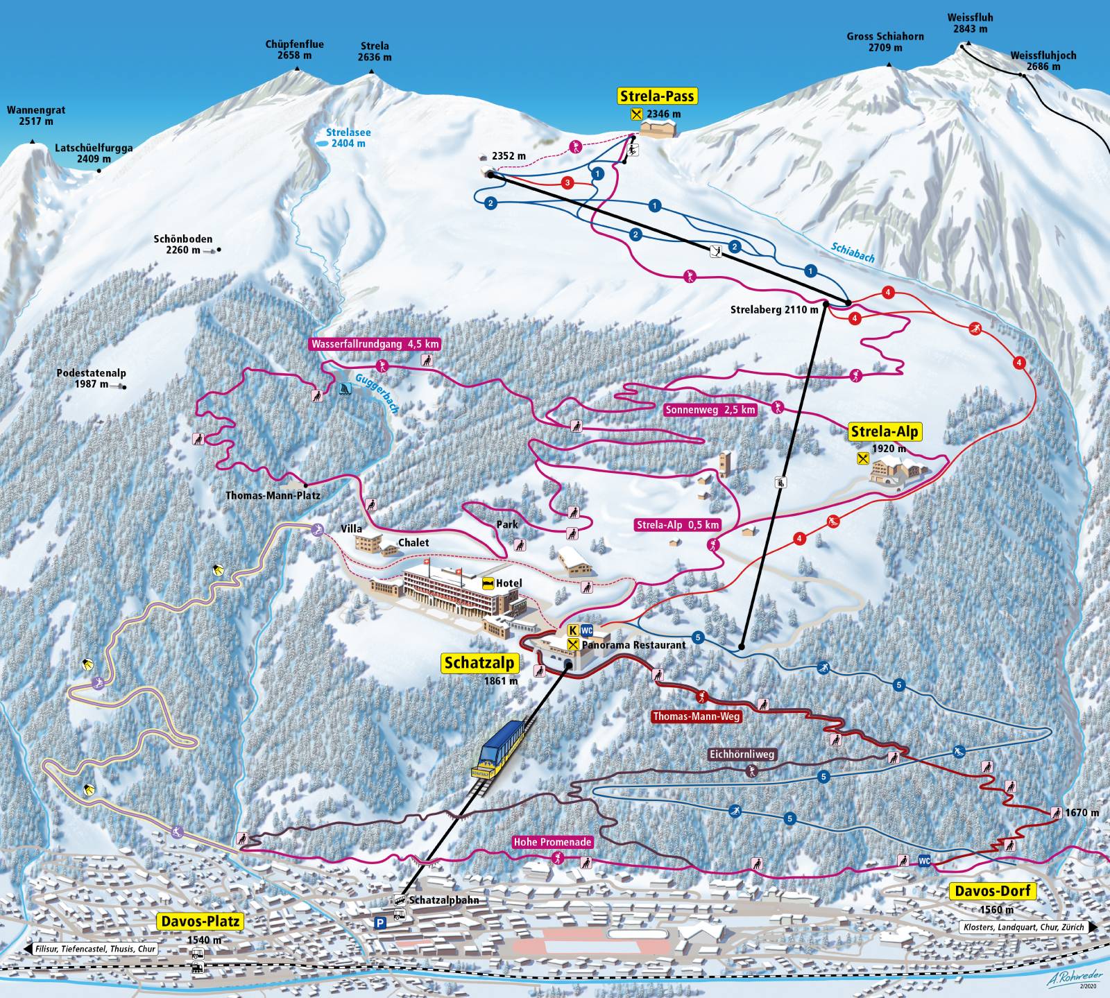 Pistenplan vom Skigebiet Schatzalp – Strela