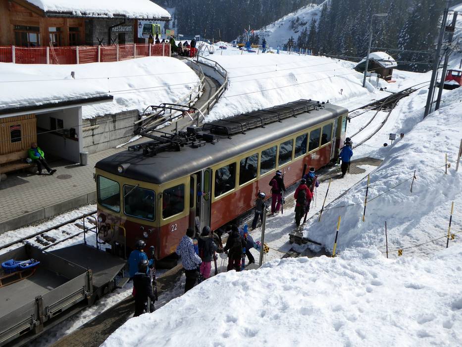 Von der Talstation Lauterbrunnen führt eine Luftseilbahn nach Grütschalp. Von dort geht es per Schmalspurbahn weiter zur Sesselbahn Winteregg ins Skigebiet.