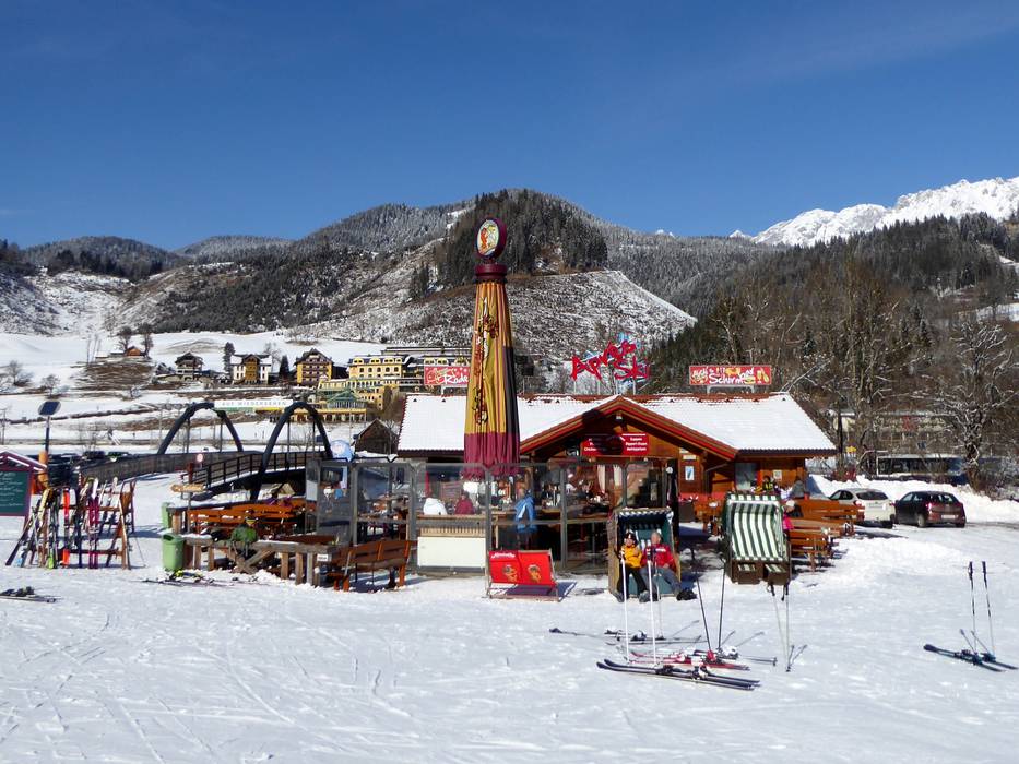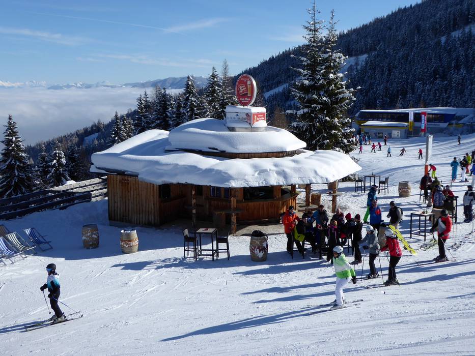 Sonnenverwöhntes Après-Ski bietet die Hoo-Ruck Alm auf der Hochwurzen an. Legendär sind zudem die Spare Ribs.