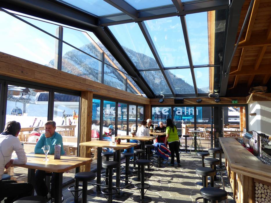 Trendig und modern präsentiert sich der MühlStodl in Gleiming an der Talstation des Silver-Jets. Ein lustiger Tagesausklang ist hier garantiert.