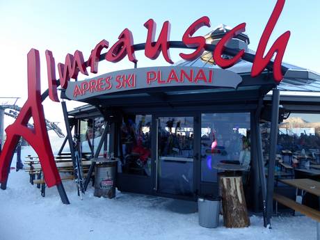 In Schladming kommt man definitiv zum Feiern, entweder auf eine der Berghütten und Schirmbars auf der Planai oder an der Talstation. Hervorzuheben sind hier die Schafalm, die Almrausch-Schirmbar sowie die Hohenhaus Tenne an der Talstation. Auch das spätere Abendprogramm kann in Schladming feucht-fröhlich absolviert werden. Auf der Hochwurzen laden die Seiterhütte und insbesondere die Tauernalm zum Feiern ein. Die Reiteralm bietet mit der Hochalm häufig Live-Musik und entsprechend gute Stimmung. An der Talstation wartet der MühlStodl. Auch am Hauser Kaibling findet man ein lässiges Plätzchen zum Après-Ski in der AlmArenaA und in der Gumpenbar.