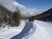 Kaum Gefälle auf der Panorama-Abfahrt zwischen der Talstation 4er-Sesselbahn Sennjoch und der Mittelstation Kreuzjochbahn. - einige Freeride-/Tiefschneegebiete