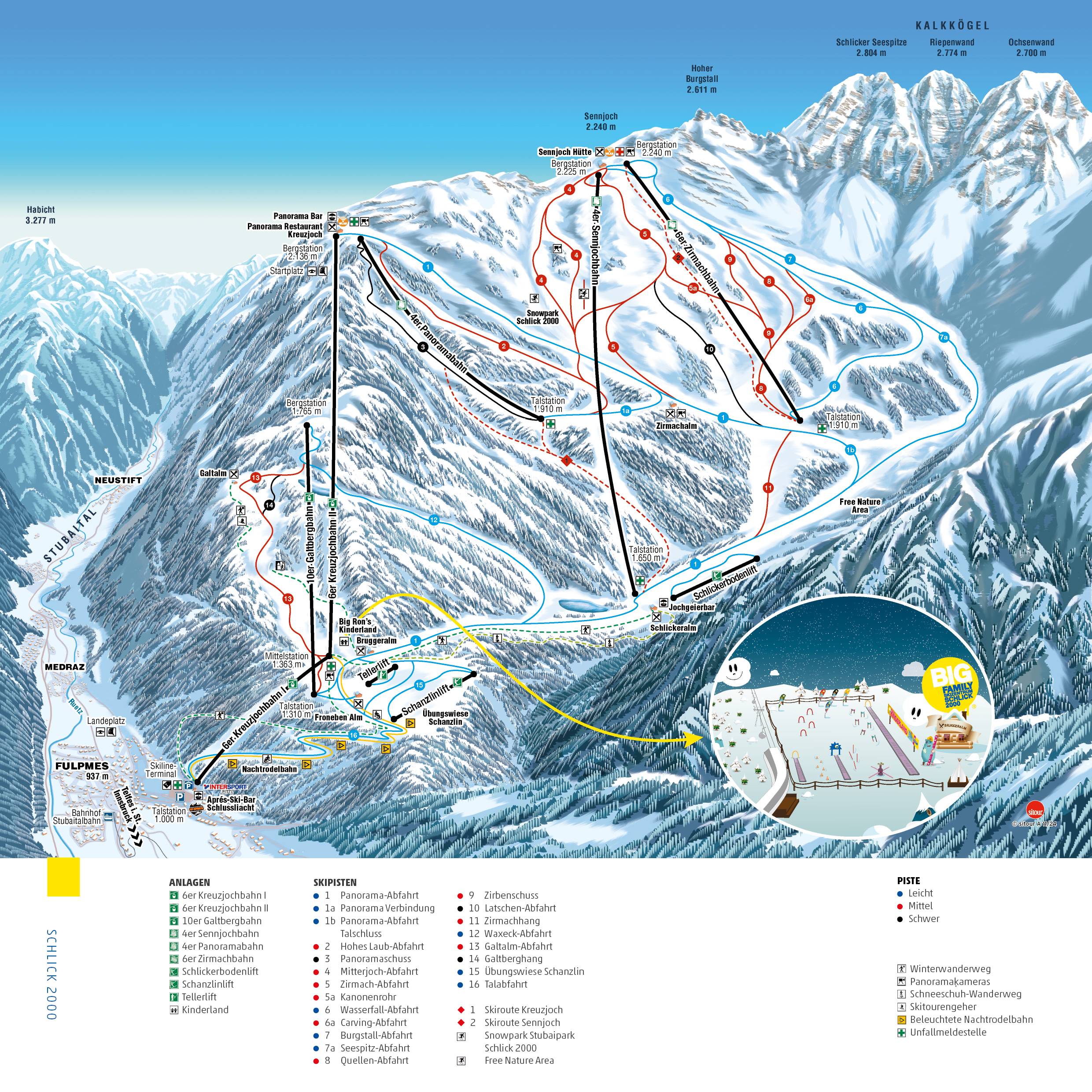 Pistenplan Schlick 2000 – Fulpmes Saison 2025/2026
