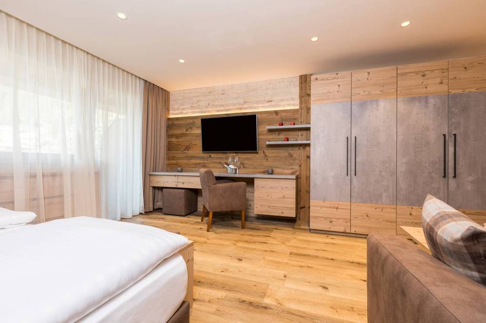 Erleben Sie eine besondere Natur- und Heimatverbundenheit in unseren komfortablen Zimmern, die teilweise mit heimischem Lärchenholz eingerichtet sind. Im Hotel sorgen liebevolle Dekorationen aus Stein, Holz und Glas sowie Jagdtrophäen und das moderne Tiroler Flair für eine gemütliche Urlaubsatmosphäre.