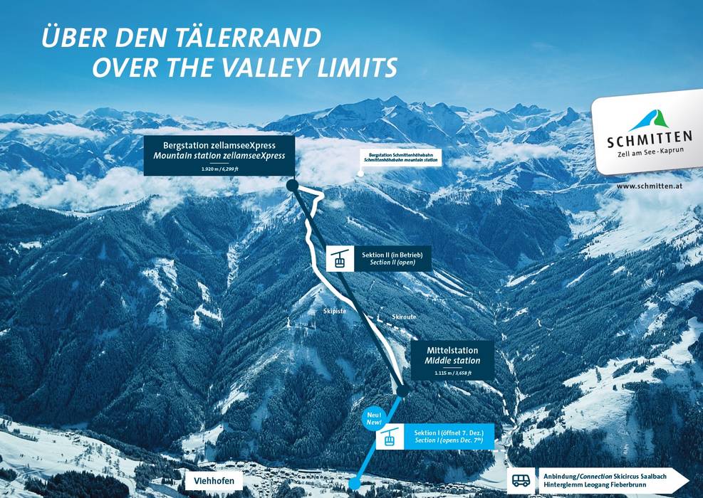 Die neue 10er-Gondelbahn zellamseeXpress I sorgt für den lange geplanten Anschluss von Viehhofen im Glemmtal an die Schmittenhöhe. Ohne Umsteigen an der Mittelstation befördern die beiden modernen Liftanlagen zellamseeXpress I und zellamseeXpress II ihre Gäste komfortabel ins Skigebiet.