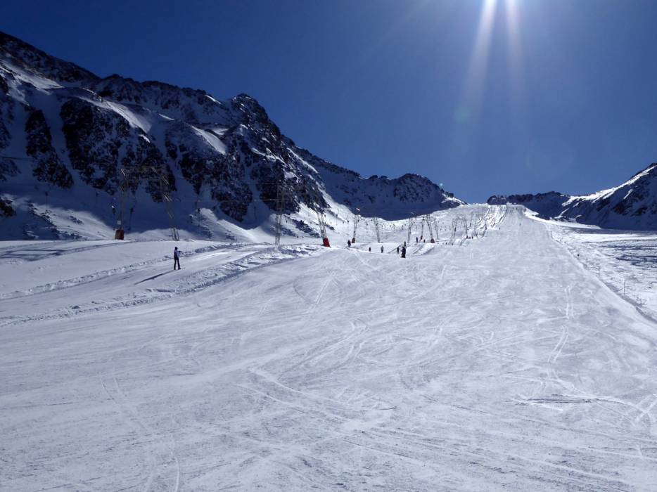 Das Skigebiet Schnalstaler Gletscher am Ende des Schnalstals ist in Südtirol ein echter Geheimtipp zum Skifahren. Im Frühling, wenn die Firnschneehänge mit der Sonne um die Wette funkeln, können alle Sonnenanbeter die warmen Frühlingsstrahlen genießen und in gleißenden Firnschnee abfahren. weiterlesenDas Skigebiet Schnalstaler Gletscher am Ende des Schnalstals ist in Südtirol ein echter Geheimtipp zum Skifahren. Im Frühling, wenn die Firnschneehänge mit der Sonne um die Wette funkeln, können alle Sonnenanbeter die warmen Frühlingsstrahlen genießen und in gleißenden Firnschnee abfahren. Im Skigebiet Schnalstaler Gletscher tummeln sich die Wintersportler von September bis Mai im ewigen Eis. Das Skifahren und Snowboarden am Gletscher begeistert Einsteiger, Könner und Familien. Highlights des Wintersportgebiets sind die acht Kilometer lange Schmuggler-Abfahrt bis ins Tal, die schwarze Leo Gurschler Piste (eine professionelle Trainingsstrecke für Slalom und Riesenslalom) und das auf 3.212m höchstgelegene Berghotel Europas namens Glacier Hotel Grawand.