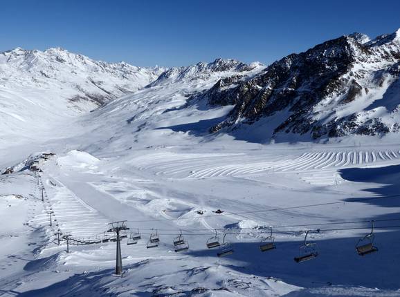 Der Schnalstaler Gletscher ist ein mittelgroßes Skigebiet. Neben dem Gletscherplateau erstreckt sich das Skigebiete über weitere Pisten, dem Hintereis, Teufelsegg und Lazaun. Es ergibt sich somit ein Höhenunterschied von ca. 1200 m. Im Herbst startet am Schnalstaler Gletscher bereits die Skisaison auf dem Gletscherplateau.