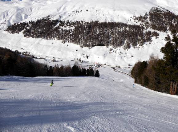 Die Könner fühlen sich auf den schweren Pisten im Rojental sehr wohl. Man kann auch immer wieder einen Abstecher in den Tiefschnee machen.
