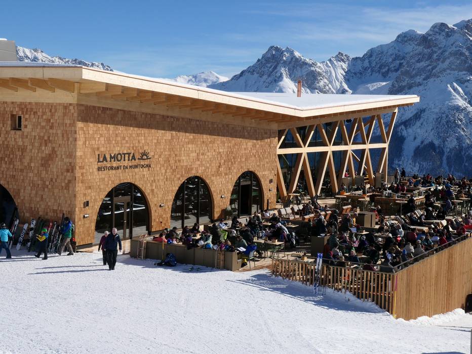 Neueröffnung zur Saison 2024/2025: Das neue La Motta bietet besondere Restaurant-Erlebnisse und die Architektur ist beeindruckend. Gastronomisch ist das La Motta in verschiedene Bereiche aufgeteilt. Das Restaurant La Finezza ist bedient und bietet regionale und moderne Küche mit Grillspezialitäten. Die Mahlzeiten werden von erlesenen Weinen begleitet. Das Prontezza ist ein großes Selbstbedienungsrestaurant mit Family Corner, großen hellen Räumen. Der Bereich Bar & Café bietet frisch gebrühten Kaffee, Aperitifs und frische Drinks. Eine sehr große Sonnenterrasse ist für alle Bereiche ideal zum Verweilen und Genießen. Hier bleiben keine Wünsche mehr offen.
