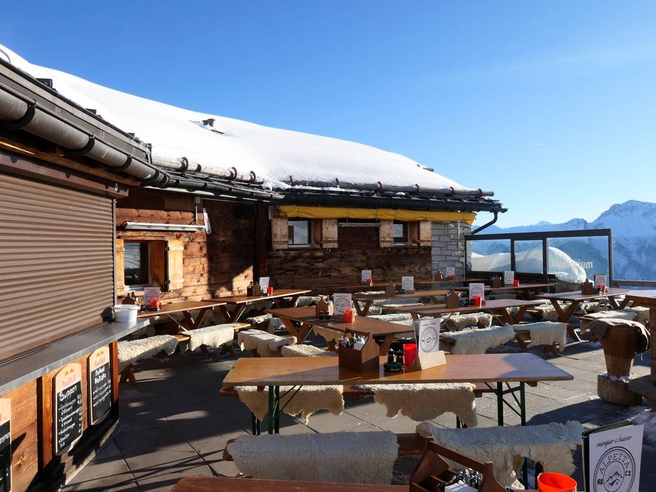Die urige Hütte ist ideal für einen Stop auf der Traumpiste. Bei kaltem Wetter lockt die gemütliche und urige Stube mit Kamin. Wenn die Sonne scheint kann man sich auf der Sonnenterrasse niederlassen und das Panorama genießen.
