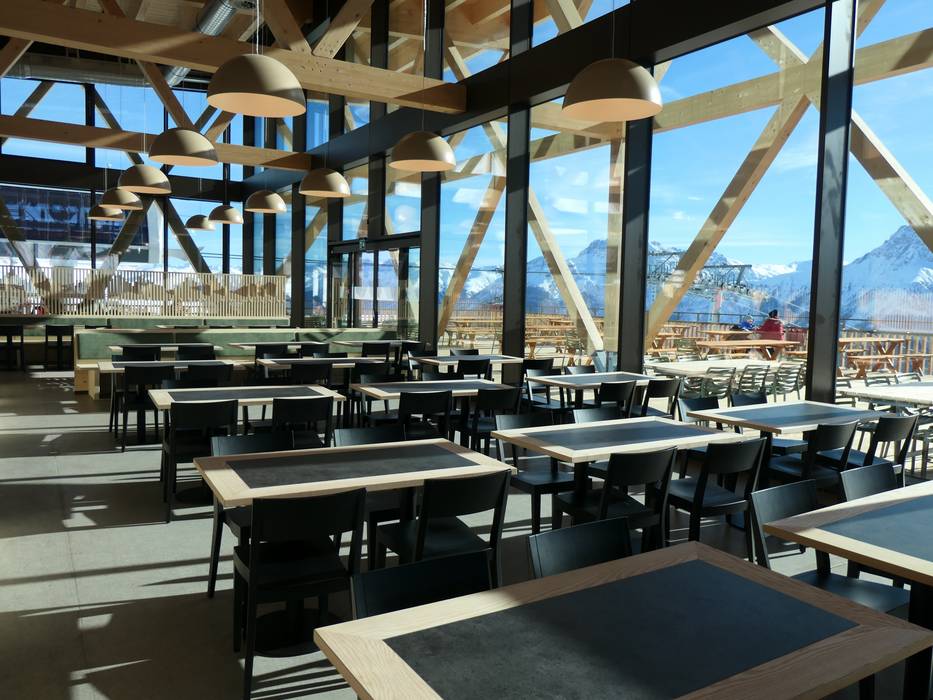 Typisches Bergrestaurant mit Menüs, à la Carte und großer Sternenbar auf der Sonnenterrasse. Im rustikalen Fonduestübli werden verschiedene Fondues serviert.