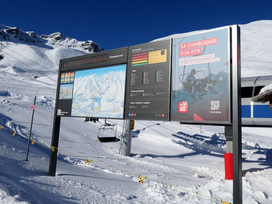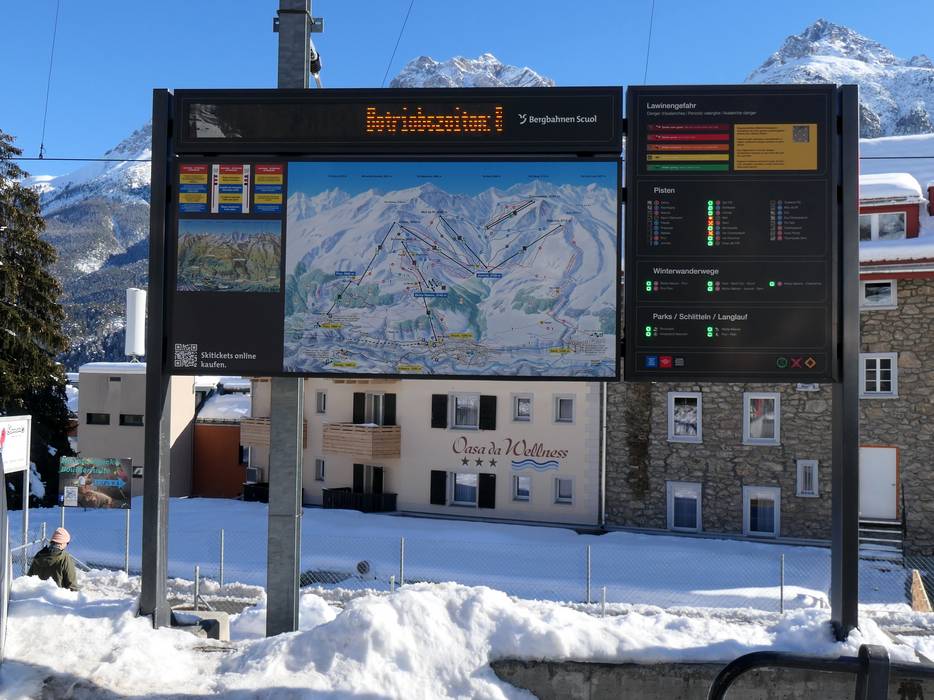 Orientierung (Pistenplan, Informationstafeln, Ausschilderung) und Sicherheit im Skigebiet Scuol – Motta Naluns