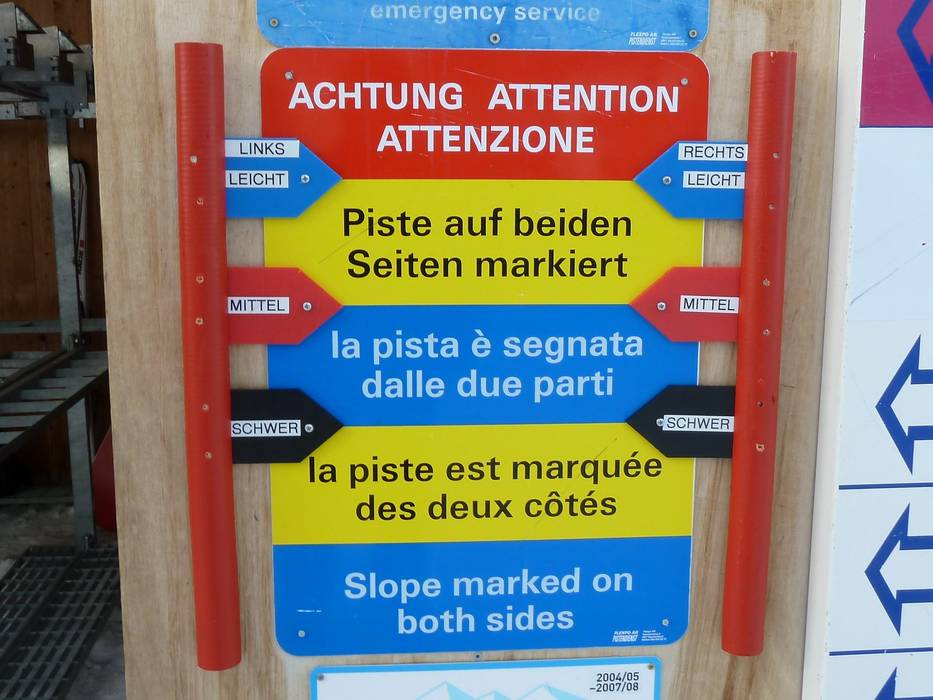Die Ausschilderung auf den Pisten ist sehr gut und man findet sich immer zurecht. Panoramatafeln im Schneesportgebiet, Leuchtlaufschriften und ein Pistenleitsystem erleichtern die Orientierung. Alle Pisten sind auf beiden Seiten so markiert, dass auch bei schlechtem Wetter klar ist, wo die Piste verläuft.