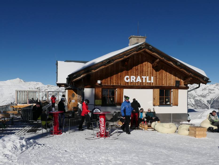 Das Restaurant Gratli bietet ein schönes Bedienungsrestaurant mit Sonnenterrasse und freundlicher Bedienung. Highlight ist der Riesen-Gratli-Burger und natürlich auch die anderen Speisen und Getränke. Direkt neben der Hütte befindet sich in diamantener Form die Skybar.
