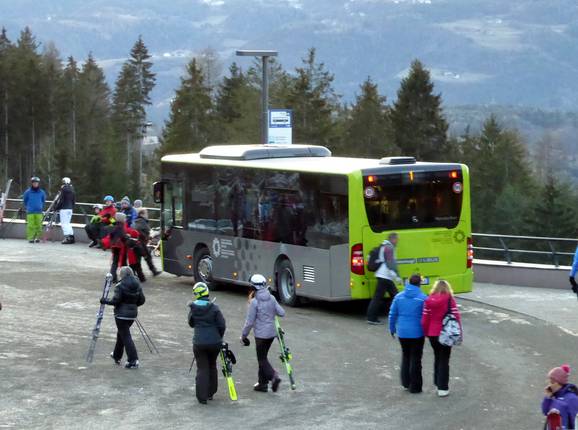 - Skibusse zur Seiser Alm Bahn in Seis verkehren insbesondere von Völs am Schlern, Seis am Schlern und Kastelruth. Auf der Seiser Alm fährt der Almbus zwischen Compatsch und Saltria. Von Saltria fährt ein kostenpflichtiger Bus nach Monte Pana zum Einstieg in die Sella Ronda. Im Grödnertal gibt es ebenfalls Skibusse.