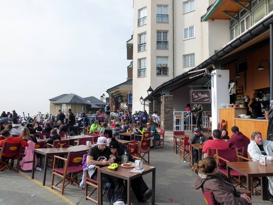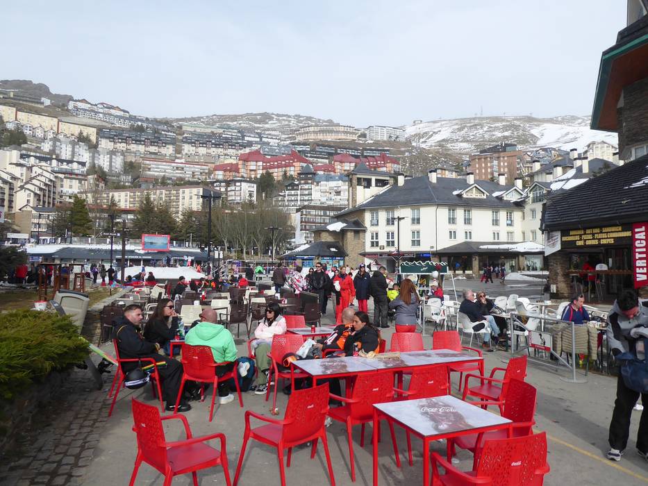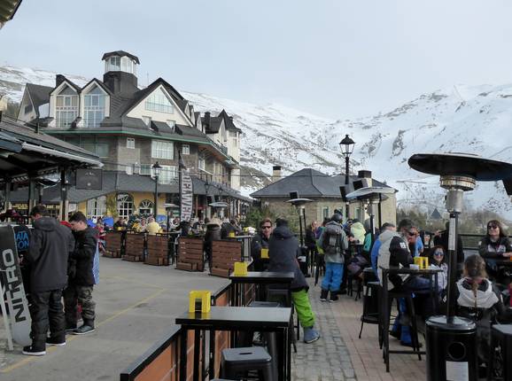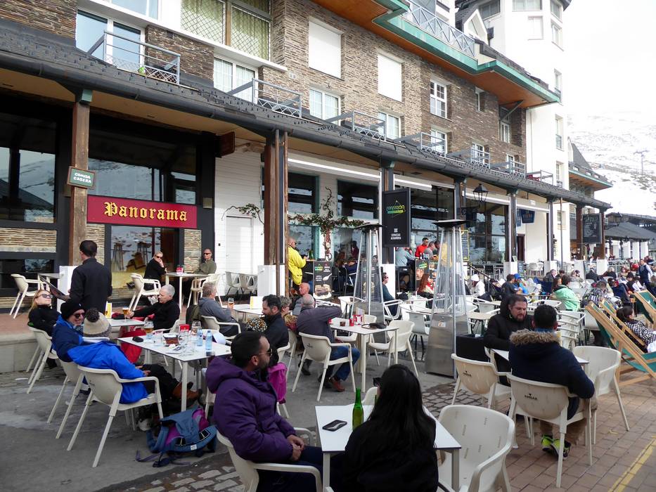 Im Talort Pradollano kann man den Skitag in unzähligen Cafés, Bars und Restaurants wunderbar ausklingen lassen. Man sitzt auf den Sonnenterrassen zusammen und genießt Drinks und Spanische Spezialitäten. Selbst im Hochwinter ist die Sonne hier meist so stark, dass man draußen sitzen kann. In einigen Lokalitäten legen auch DJ's auf und es wird Musik geboten.