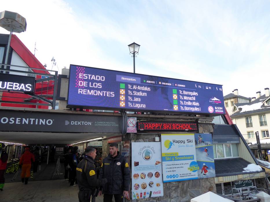 Die Ausschilderung im Skigebiet Sierra Nevada ist vorbildlich. Alle Pisten sind sehr gut markiert und ausgeschildert. An den Liften findet man Informationen zur jeweiligen Anlage. An vielen Punkten im Skigebiet gibt es digitale Anzeigen mir Informationen zu den Pistenverhältnissen und den Betriebszeiten der Anlagen. Man findet sich somit bestens im Wintersportgebiet zurecht.