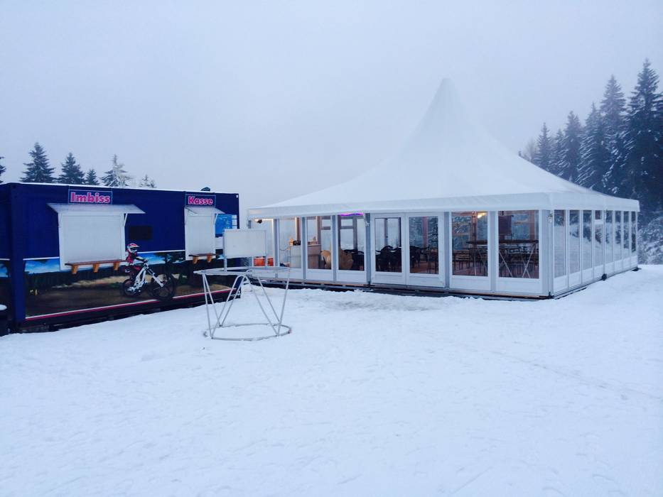 Neuer beheizter Panorama-Pavillion (ca. 100 Sitzplätze) zum essen, trinken, aufwärmen...