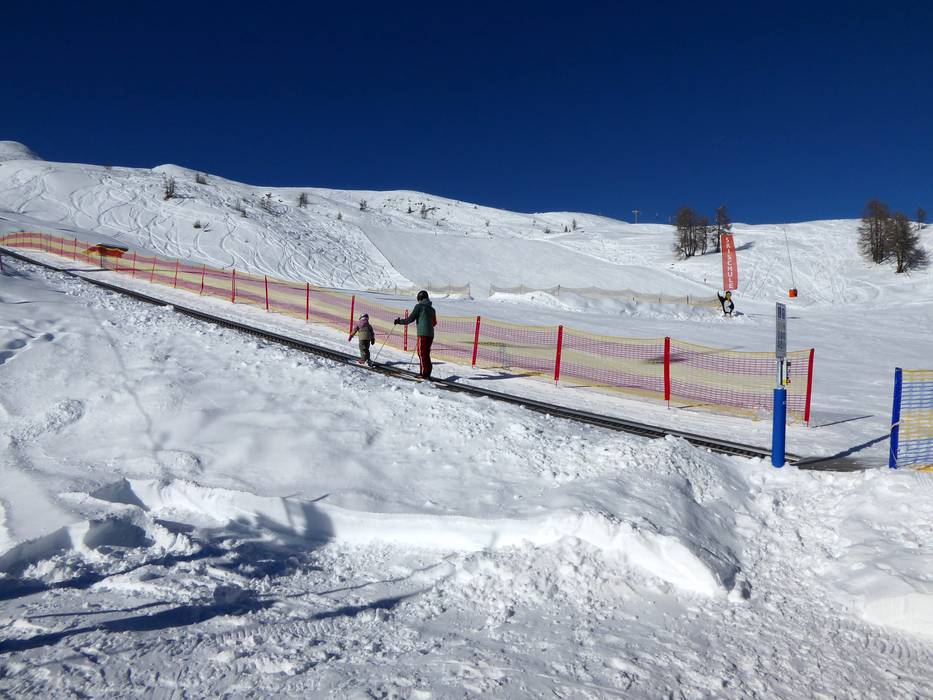 An der Bergstation der Gondelbahn gibt es ein abgegrenztes, frei zugängliches Übungsgelände mit Förderband. Das Förderband der Skischule kann nur mit Kursen der Skischule genutzt werden. Oberhalb der Bergstation befinden sich leichte und breite Pisten, die über eine Sesselbahn und einen Schlepplift erreicht werden können. Die Talabfahrt ist bis zur Mittelstation leicht, danach mittelschwer.