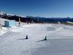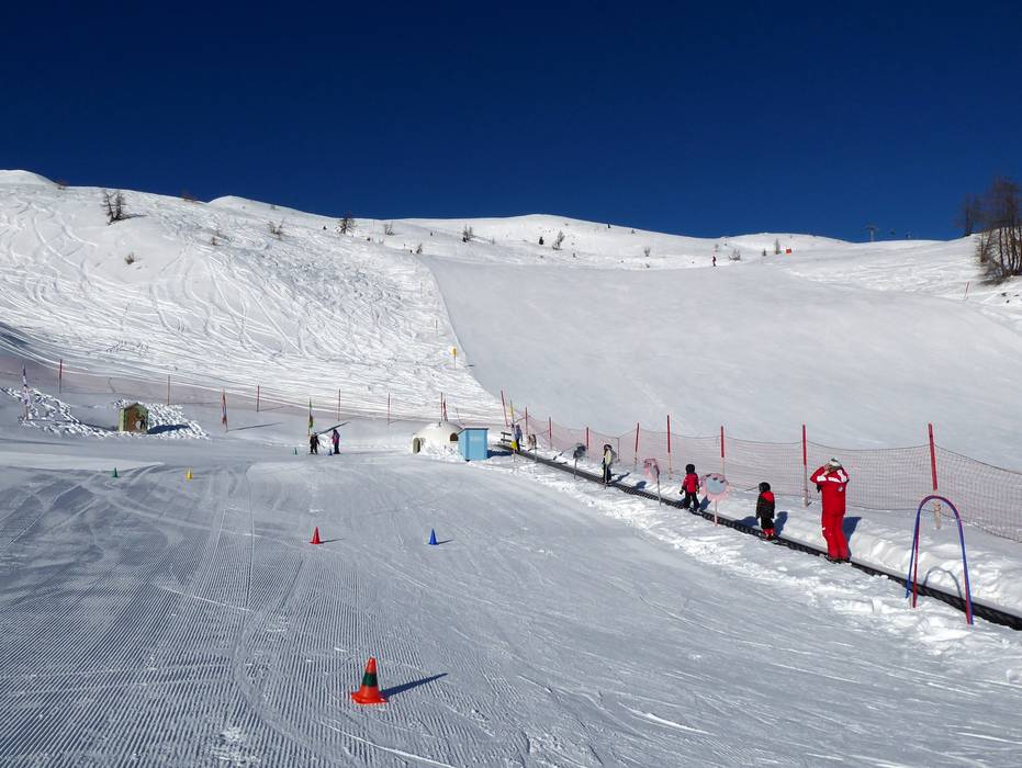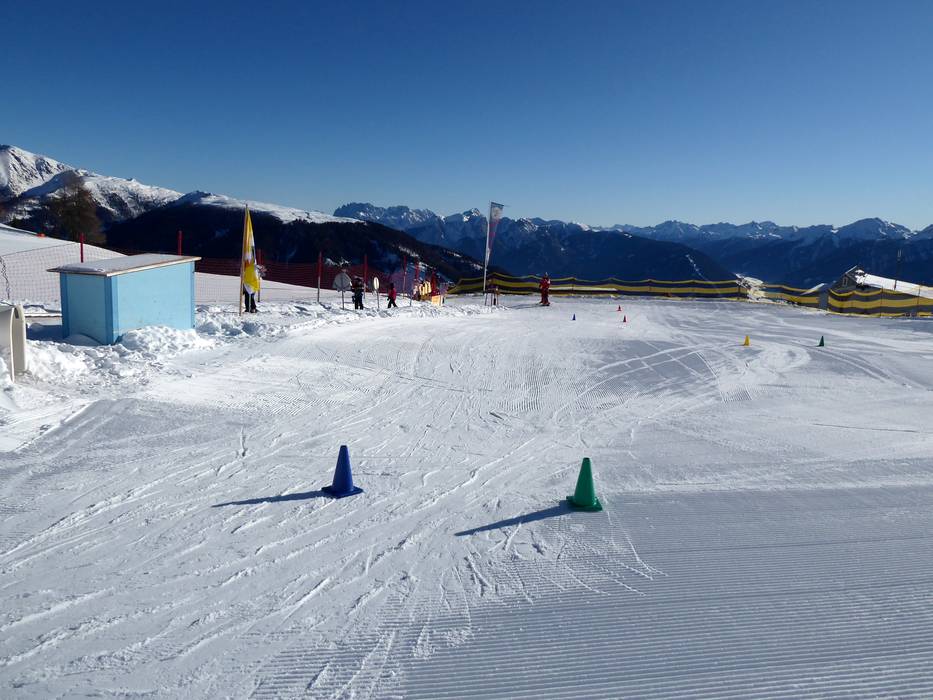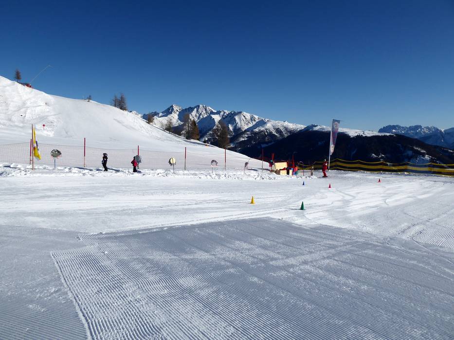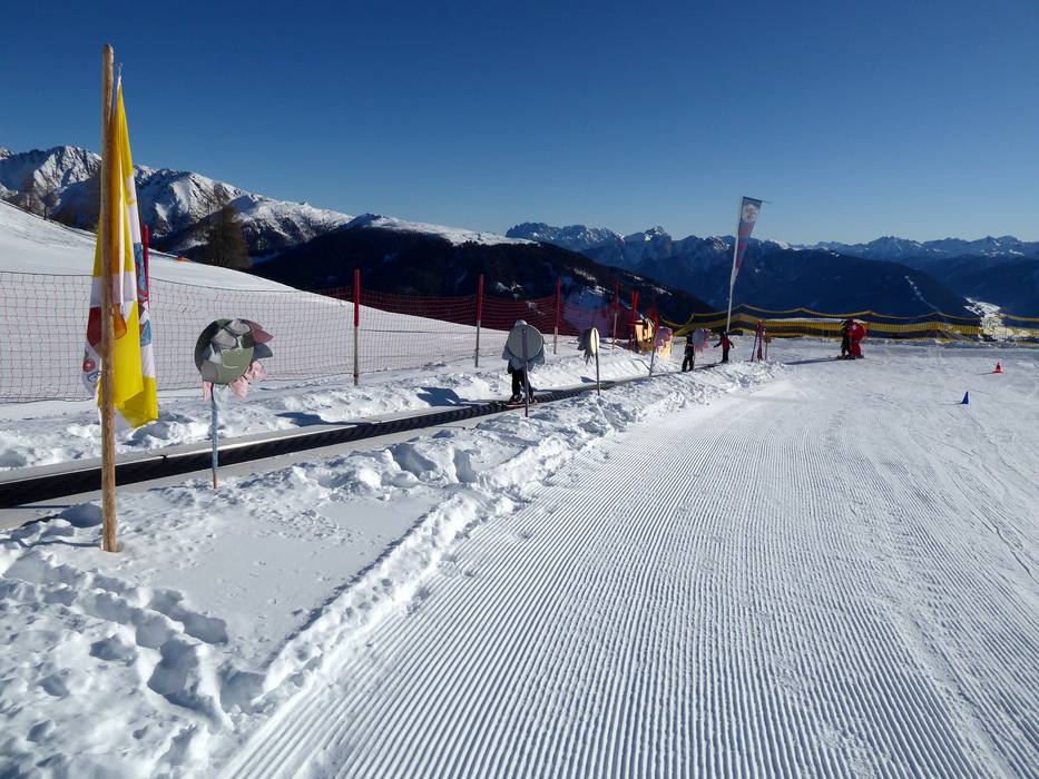 An der Bergstation der Gondelbahn befindet sich das Kinderland der Wintersportschule Hochpustertal. Hier können die Kleinen die ersten Schwünge in sonniger Lage erlernen. Das Förderband ist exklusiv für die Skischule reserviert.