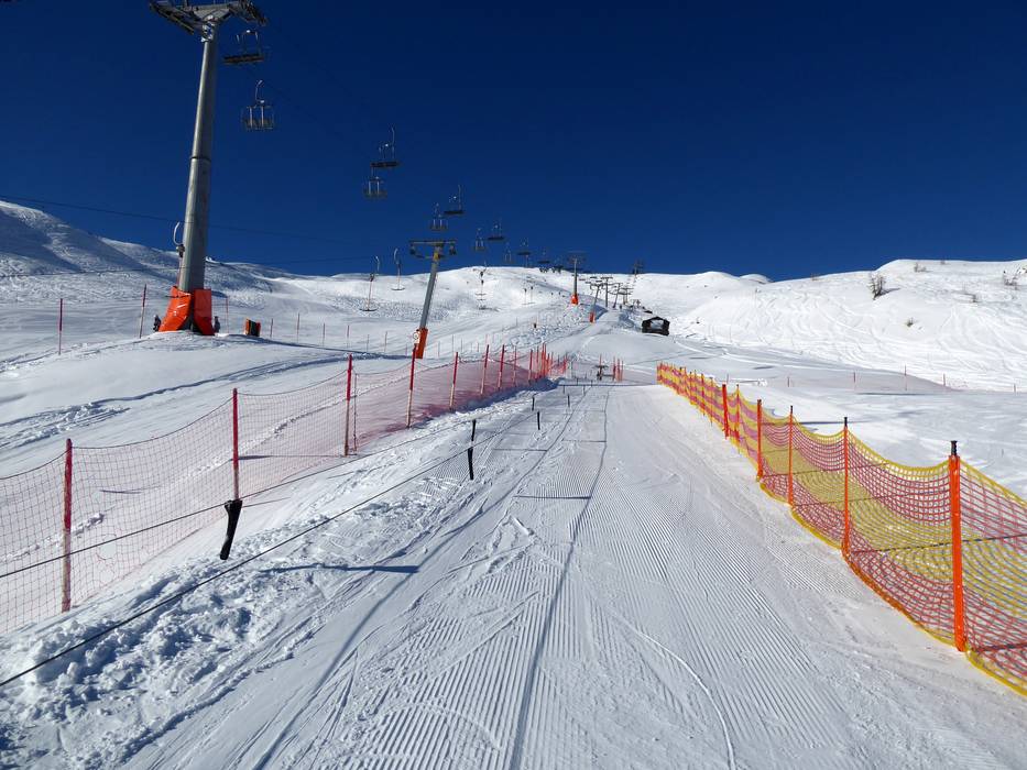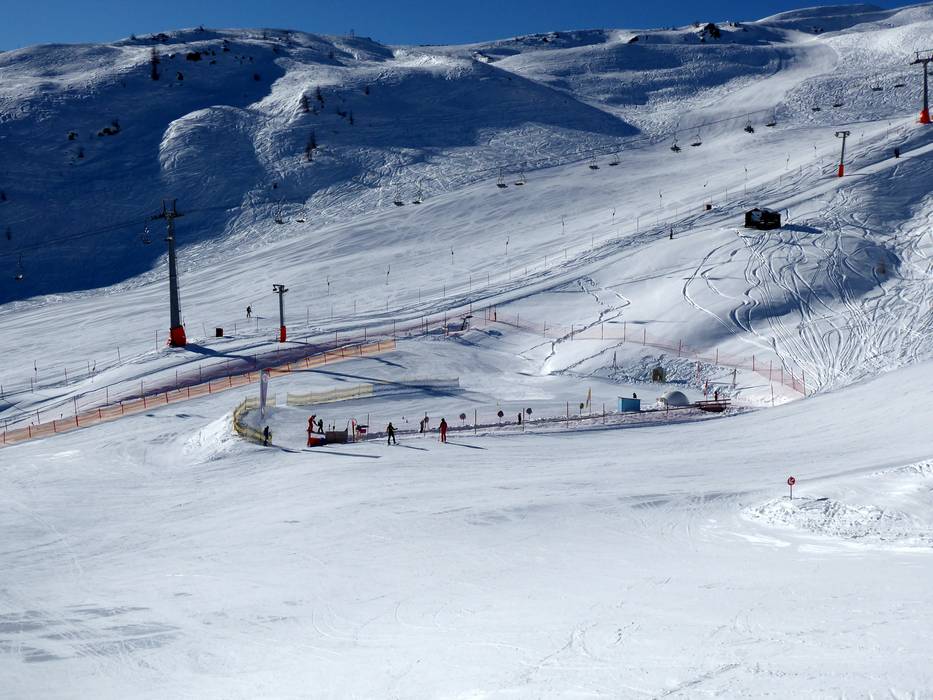 An der Bergstation der Gondelbahn befindet sich ein für alle zugängliches Übungsgelände mit Seillift. Das Förderband kann nur in Kombination mit einem Skikurs der Wintersportschule benutzt werden. Ab und zu schaut Bobo auch im Übungsgelände vorbei.