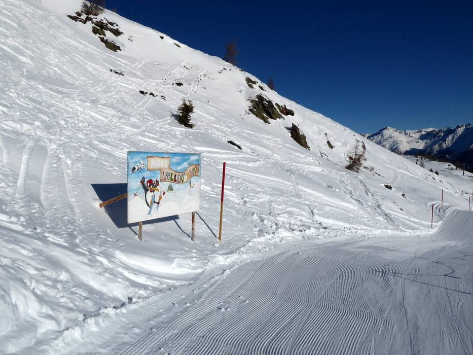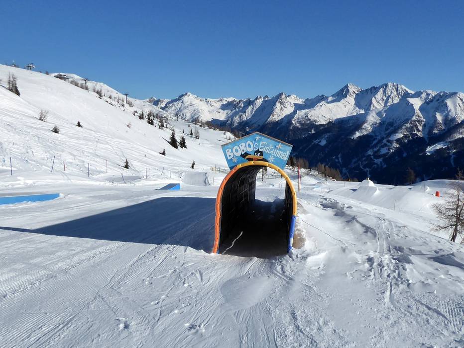 Die Funny-Slope ist leicht mit dem Schlepplift Gadein zu erreichen und bietet neben einer Wellenbahn, Bobo's Eistunnel und lustigen Figuren auch eine Schnecke. Hier können sich die Kleinen so richtig austoben.