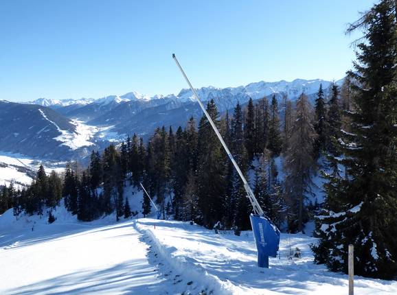 Das Skigebiet ist aufgrund der geographischen Lage und der Höhe sehr schneesicher. Der Großteil der Pisten liegt auf über 1800 m. Eine umfassende Beschneiung bis ins Tal garantiert sehr gute Bedingungen.