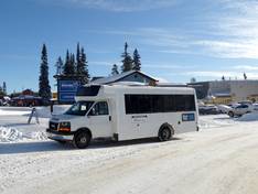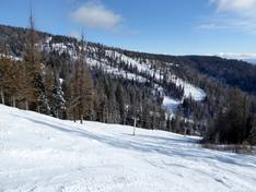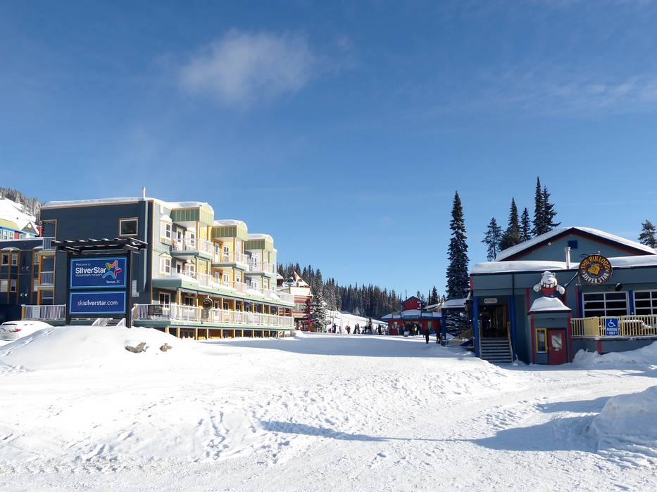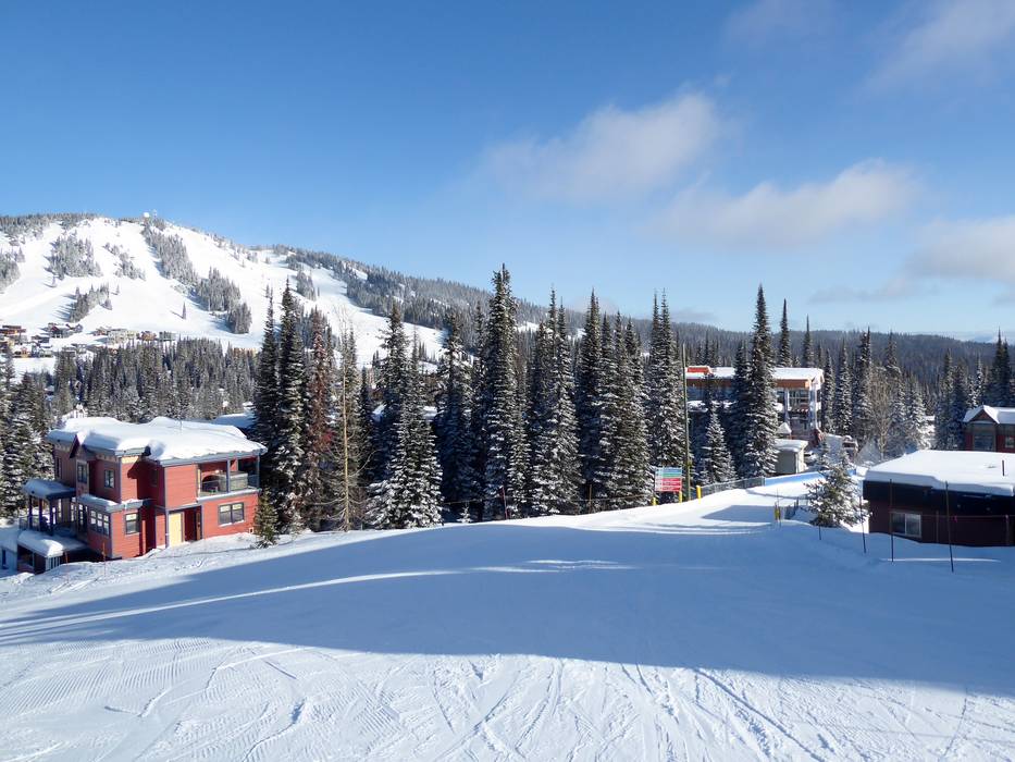 Mit der Gondelbahn auf den Berg Skigebiet SilverStar Mountain Resort Von Silver Queen zum Village SilverStar Mountain Village Blick vom Village zum Vance Creek 1915 m