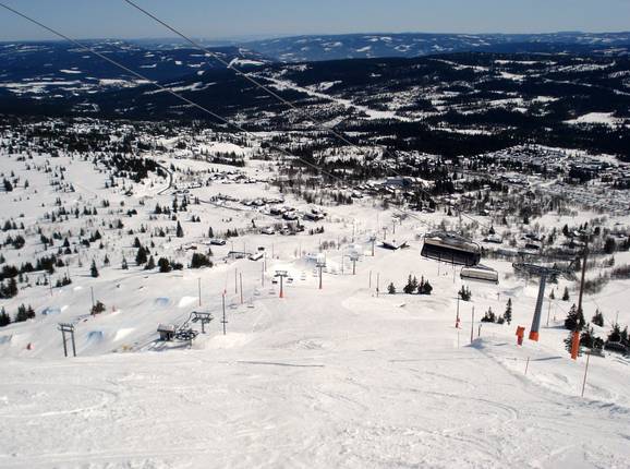 Skeikampen bietet zumeist leichte bis mittlere Abfahrten auf teilweise fast baumfreien Hängen. Zwei schwere Pisten runden das Angebot ab.