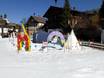 Im Übungsgelände "Bobo's Kinder-Club" in Hochbrixen erlernen die Kinder ab 3 Jahren mit speziell geschulten SkilehrerInnen auf spielerische Art und Weise das Skilaufen. Die Skischule Brixen im Thale betreibt das Kinderland.
