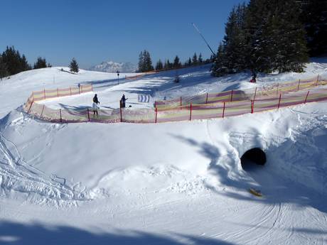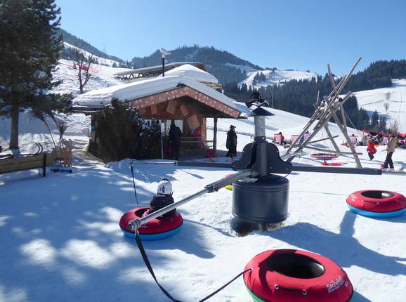 Das Ellmauer Kinderland ist ein riesen Kindergelände mit eigenen Förderbändern, Karussell und Tubingbahn. Das Gelände erstreckt sich von Going bis Ellmau und ist auch für Anfänger sehr gut geeignet. Kinder lernen hier bei der Skischule Ellmau.