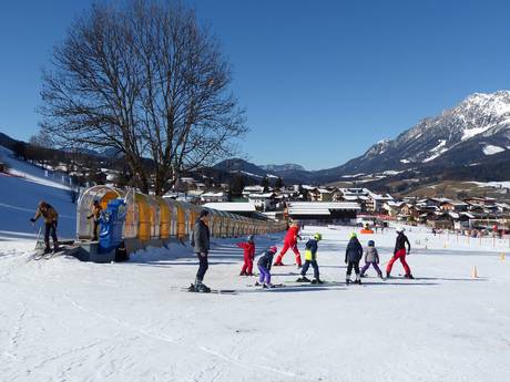 Die Skischule Alpin Hopfgarten betreibt an der Talstation in Hopfgarten ein großes Kinderland. Das Anfängergelände mit Zauberteppich grenzt direkt an.