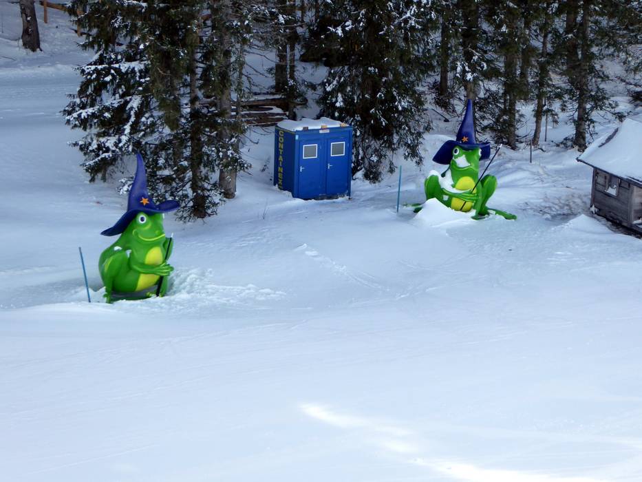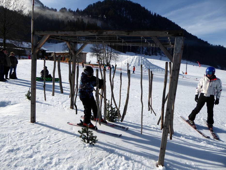 Die Hexenwelle bei der Abfahrt Nr. 46 in Söll bringt Spaß für Jung und Alt und verbessert die Koordination. Hier kann man mit der Hexe abklatschen.