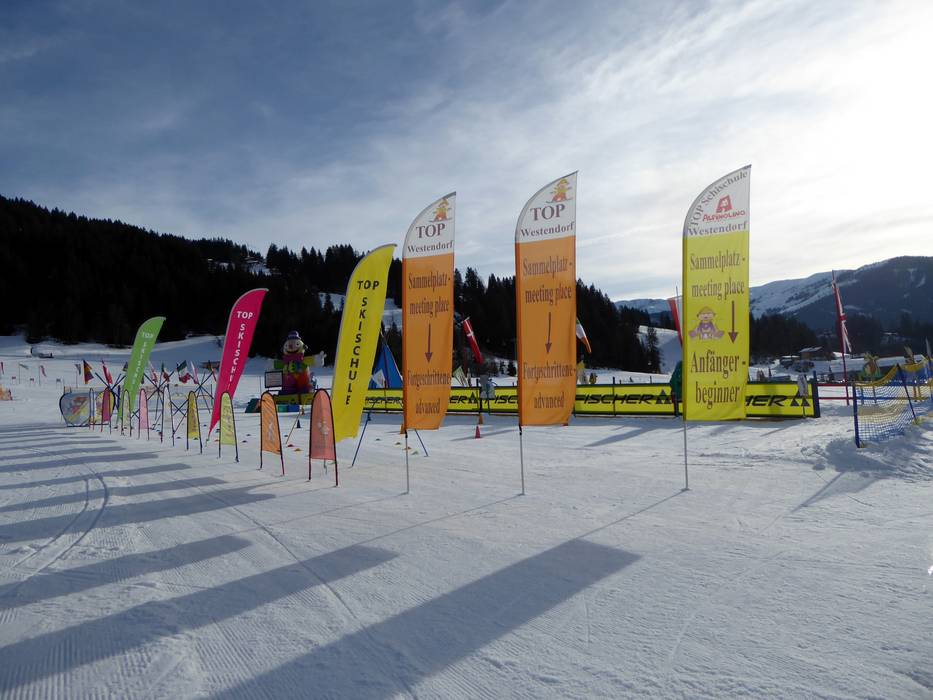 Das Areal der TOP Schischule bietet unter anderem folgende Einrichtungen: Zauberteppich, Kinderskizug, Bobbahn, Parcours, Wellenbahn und Indianerzelt beim Clown. Das Gelände liegt an der Übungswiese in Westendorf.