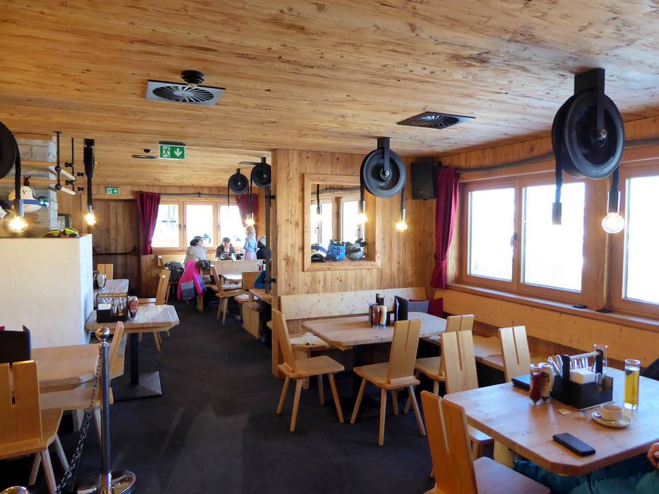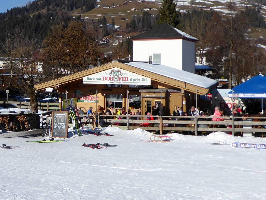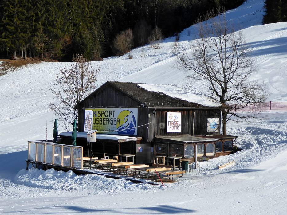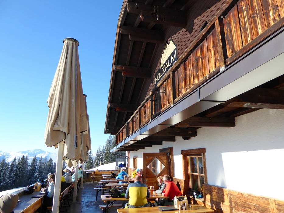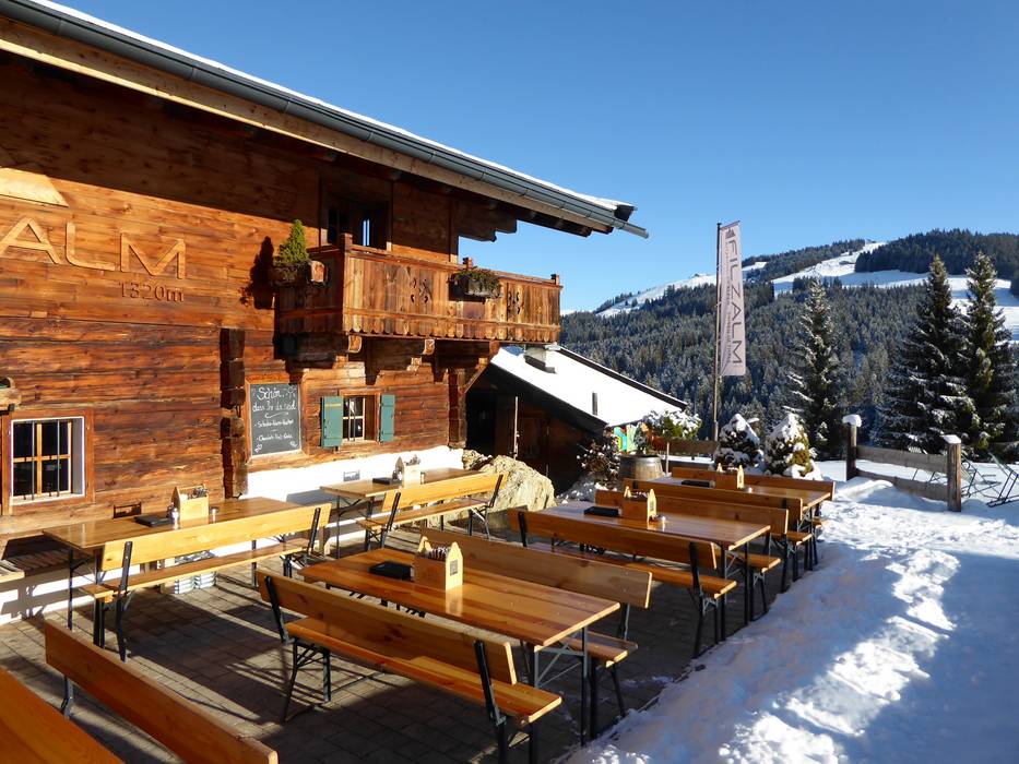 Die urige, familiäre Hütte bietet Bedienung und Selbstbedienung. Sie ist auch zum Nachtskifahren geöffnet. Auf der Sonnenterrasse kann man die Pisten in Söll gut überblicken.