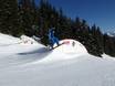 Der Einsteiger Snowpark befindet sich auf der Übungswiese im Tal von Westendorf. Es gibt mehrere Obstacles und eine Mini-Cross Line mit Steilkurven und Wellen.