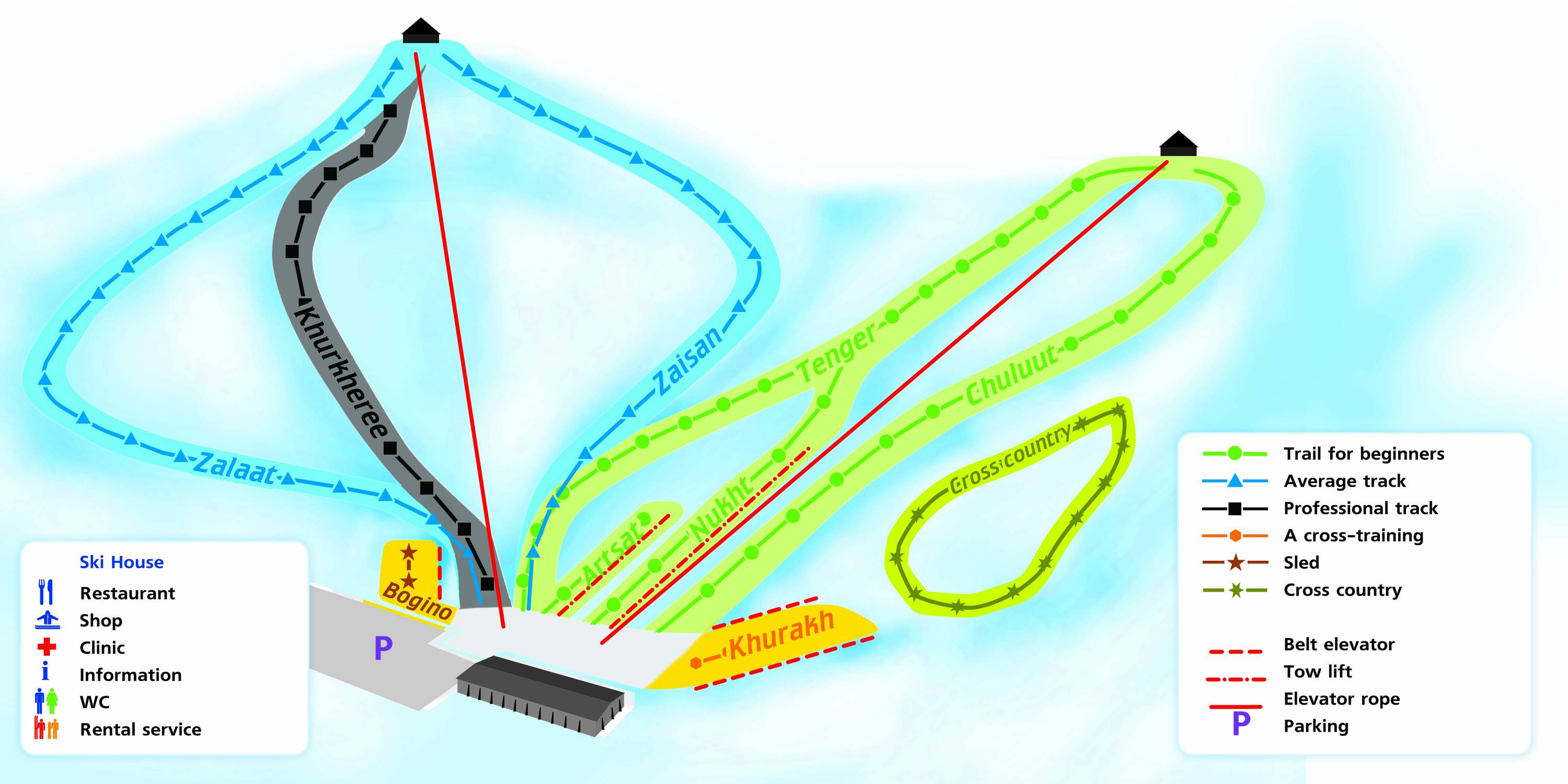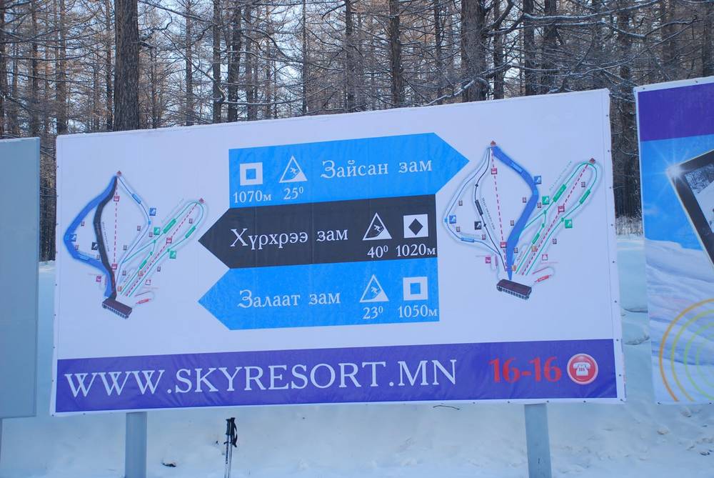 Orientierung (Pistenplan, Informationstafeln, Ausschilderung) und Sicherheit im Skigebiet Sky Resort – Ulaanbaatar