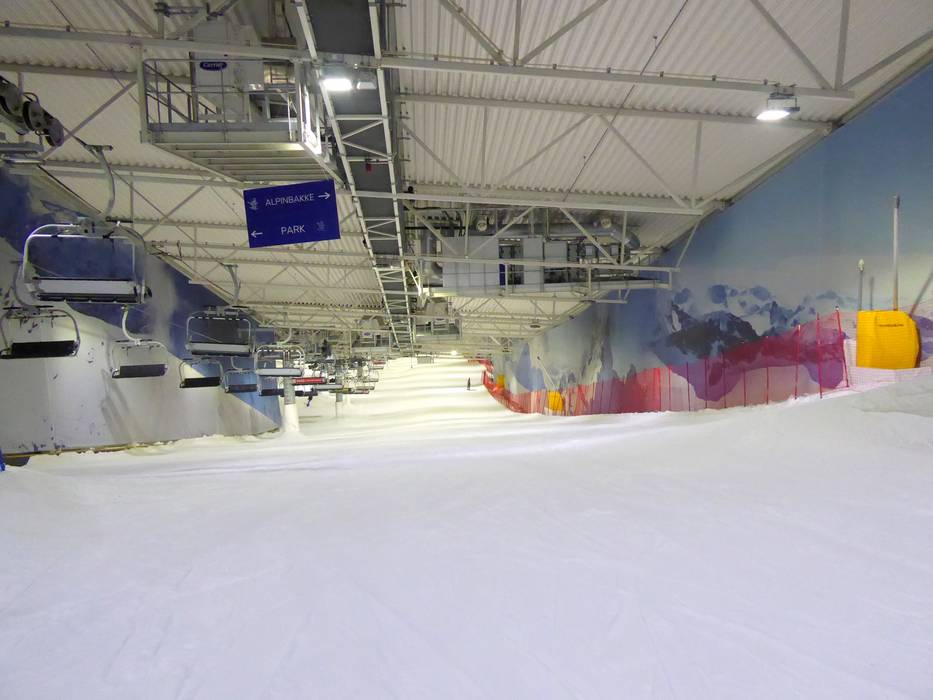 Die Skihalle SNØ bei Oslo bietet eine schöne und breite Piste von der Bergstation bis zur Talstation. Im unteren Abschnitt teilt sich die Pisten in leicht (Familiebakke) und mittelschwer (Racing). An der Talstation der Skihalle gibt es noch eine ganz leichte Anfängerpiste mit Förderband. Ein toller Snowpark unterhalb der Sesselbahn rundet das Angebot ab.