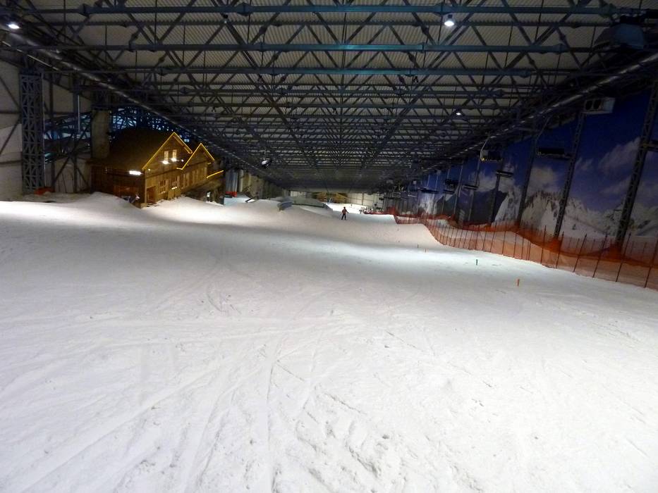 Die Skihalle Snow Arena bietet drei verschiedene Abfahrten. Eine Hauptpiste mit etwa 450 m Länge und eine Anfängerpiste mit 150 m Länge befinden sich in der Skihalle. Während der Wintermonate gibt es eine 640 m lange Außenpiste. Diese ist mit der Vierersesselbahn leicht zu erreichen. Die Außenpiste führt in einem Bogen von der Bergstation der Skihalle zur Talstation. Man fährt in der Skihalle mit der Vierersesselbahn nach oben und verlässt dann die Skihalle, um auf die Außenpiste zu gelangen. Diese Kombination aus Skihalle und Außenpiste ist bislang einzigartig. Zusätzlich gibt es eine Trainingspiste direkt unterhalb der Sesselbahn, die aber für das normale Publikum gesperrt ist. Sämtliche Pisten im Wintersportkomplex (innen und außen) sind beleuchtet.