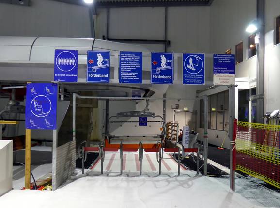 Informationstafeln im Eingangsbereich der Skihalle sowie einige Ausschilderungen auf den Pisten helfen bei der Orientierung.